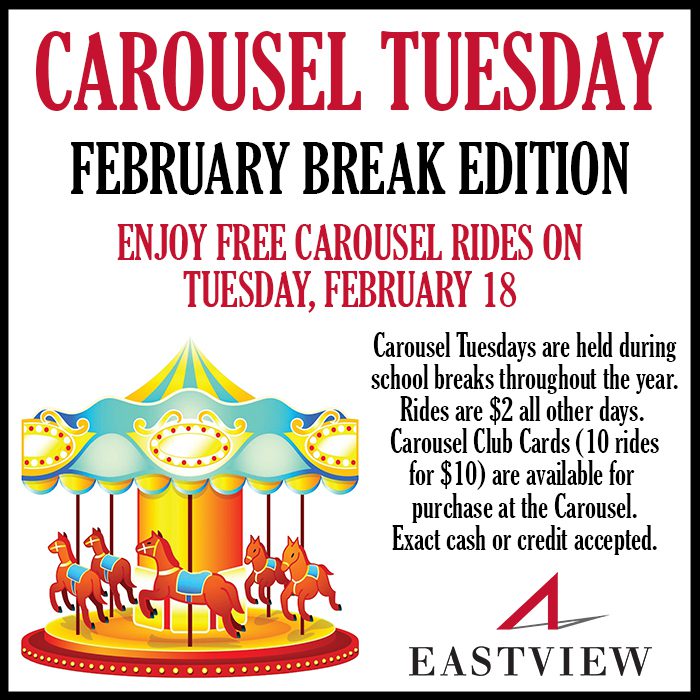 Carousel Tuesdays are held during school breaks throughout the year. All other days, one ride costs $2.00, exact change only. Purchase a Carousel Club Card (10 rides for $10) at the Carousel, exact cash or credit accepted.