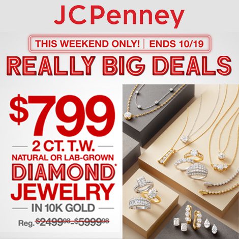 Find 2 Ct. T.W. Natural or Lab Grown Diamond Jewelry in 10K gold for just $799 this weekend ONLY at JCP!
